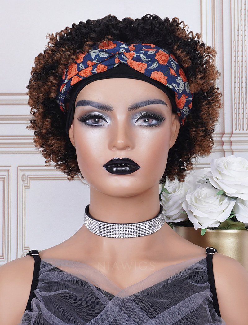 #1b/33 Headband Wig Human Hair 4C Kinky Curly Wigs (WITH FREE TRENDY HEADBAND)