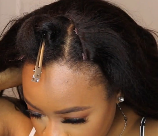 3. Cover up the opening of the U-part wig with the section of hair you left out